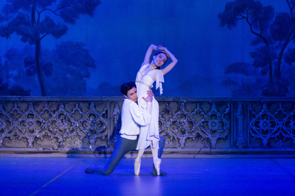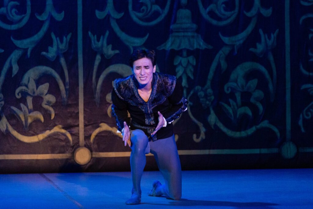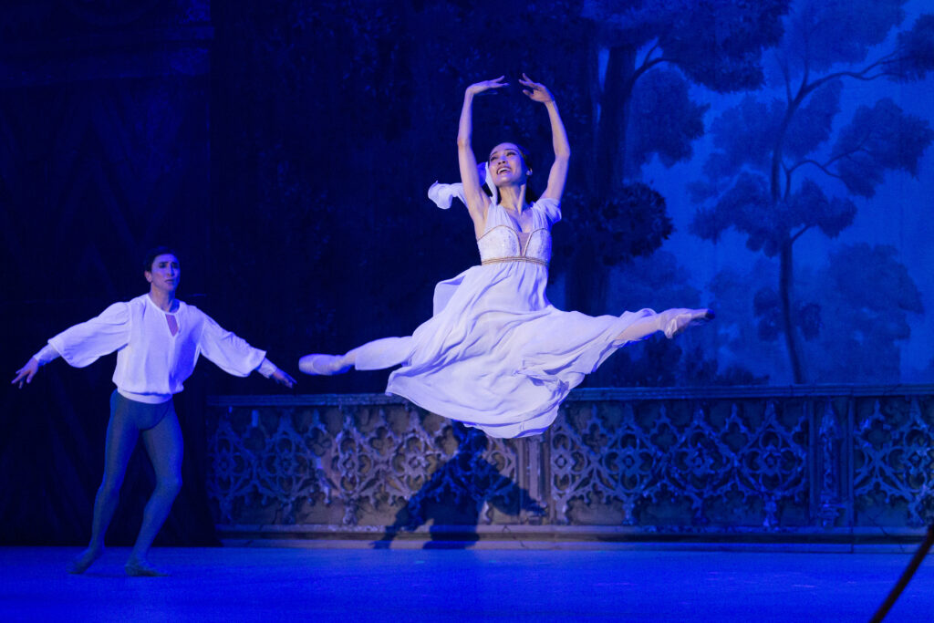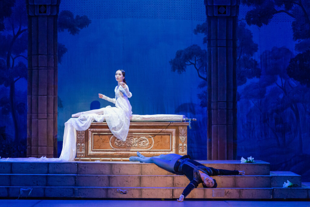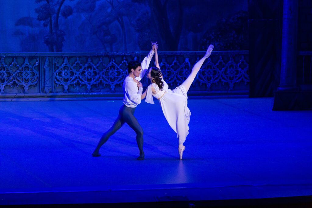 Народный артист Республики Бурятия Баир Жамбалов в роли Ромео вновь доказал, что его искусство не только технически безупречно, но и глубоко душевно. Каждое движение, каждый жест на сцене наполнены вниманием к внутреннему миру персонажа. В этом исполнении Ромео превращается в живую плоть человеческой страсти, в юного героя, который ощущает любовь и жизнь во всей полноте. Зритель не просто наблюдает танец, он вместе с героем проходит через первые трепетные эмоции, радость встречи, страх перед запретной любовью и мучительное предчувствие трагедии.