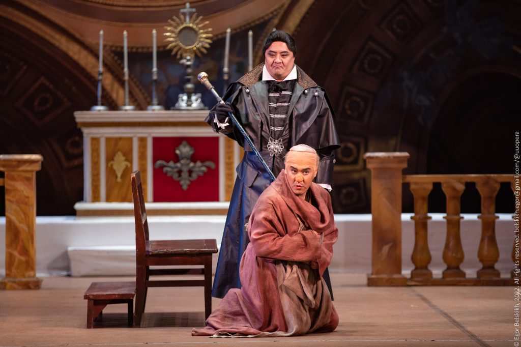 В самом сердце сюжета – сплав политической авантюры и любовной драмы. И над этим кипящим котлом возвышаются три колоссальных образа, ставшие вехами в истории оперы: Флория Тоска, великая певица, чья страсть толкает ее к пределу самопожертвования, проживающая на сцене подлинную трагедию; Марио Каварадосси – художник, воплощение благородства, мужества и романтической мечтательности; и Барон Скарпиа, шеф полиции, чей злобный, коварный и жестокий нрав делает его одним из самых отталкивающих и притягательных злодеев в репертуаре. Эти три роли – вершина вокального и сценического мастерства, требующая от исполнителей не только мощных голосов для драматической мощи Пуччини, но и глубочайшей психологической проработки. Солисты Бурятского театра оперы и балета блестяще воплощают их в этой постановке.