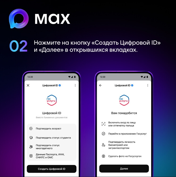 ❗Что такое Цифровой ID? Это сервис на базе мессенджера MAX, работающий через инфраструктуру портала «Госуслуги». Он позволяет создавать, хранить и использовать виртуальные аналоги ваших официальных документов, таких как паспорт РФ, СНИЛС и полис ОМС.