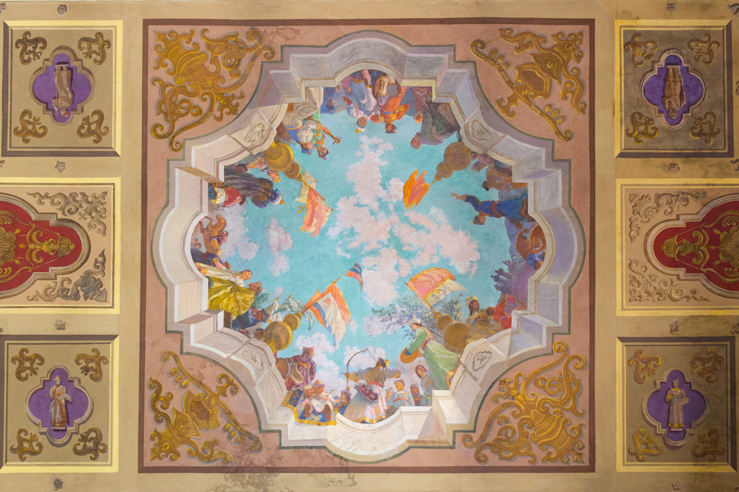 Вас ждет удивительный рассказ о грандиозном плафоне, венчающем зрительный зал. Это не просто декоративное панно, а целая вселенная, рожденная кистью художника. Мы разберемся в тонкостях его замысла и узнаем, какие образы и легенды нашли свое отражение на этом потолочном полотне.